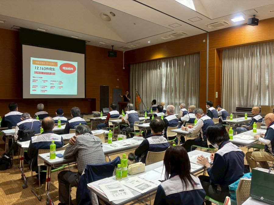 令和7年10月18日に赤帽栃木県全体研修会を開催いたしました。今回の研修会は、栃木県が行っている「ながら見守り活動」のサポート企業となるため、出前講座を受講させていただきました。栃木県ほぼ全域に事業所を構える各組合員が、登校中の子供たちに目を向けることにより、防犯へつながることを目的とし、参加させていただくことといたしました。今後は、地域防犯の一翼を担えるよう組合員には活躍していただきたいと存じます。